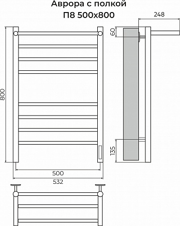 Аврора с/п П8 500х800 электро КС 9005 матовый ( new встроен диммер) Полотенцесушитель TERMINUS
