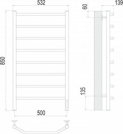 Виктория П8 500х850 Электро (quick touch) Полотенцесушитель TERMINUS